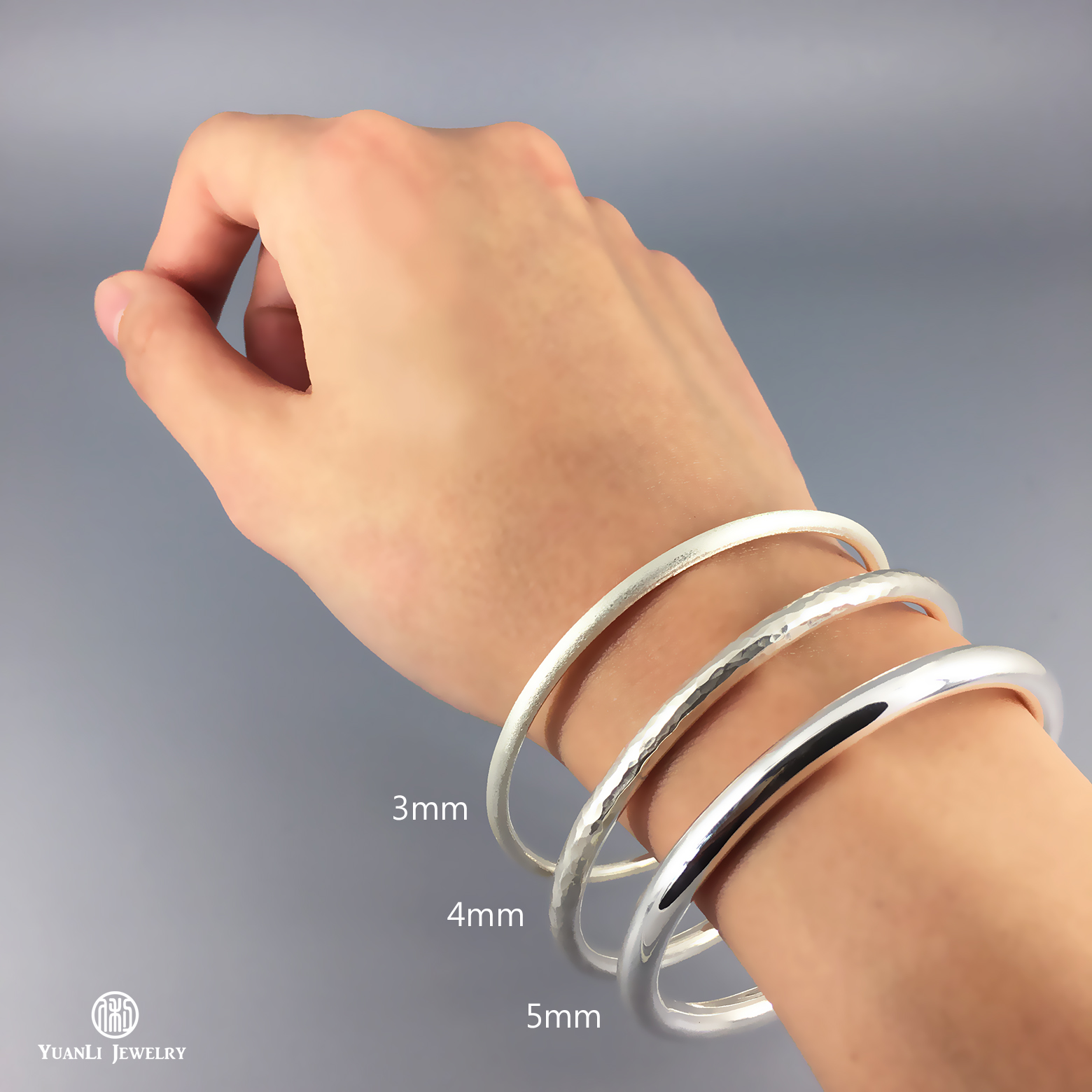飽滿圓潤的圓形純銀手環,